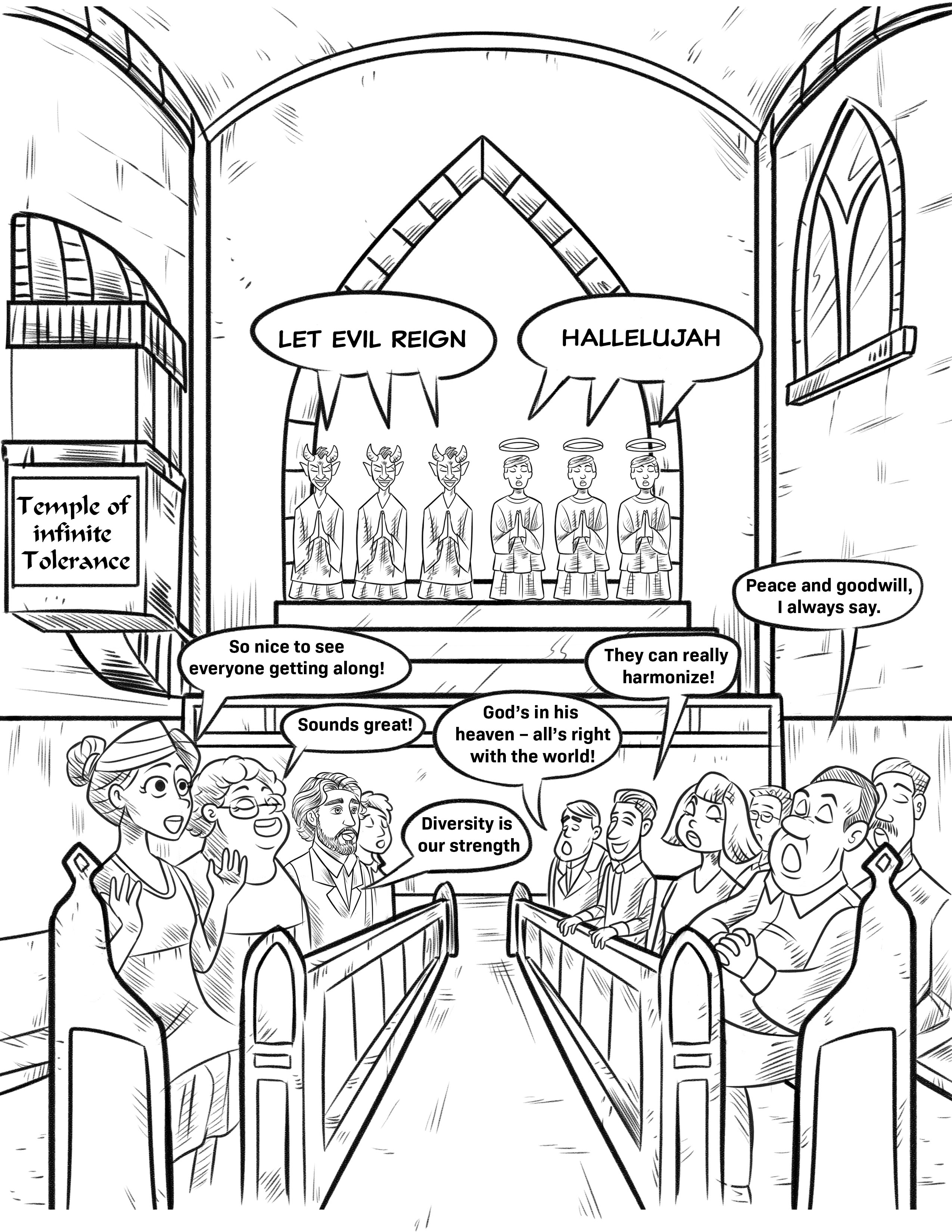 ![]() Observation #1924. In the temple of infinite tolerance, there is no distinction between good and evil -- between devil's curse and angel's prayer. |