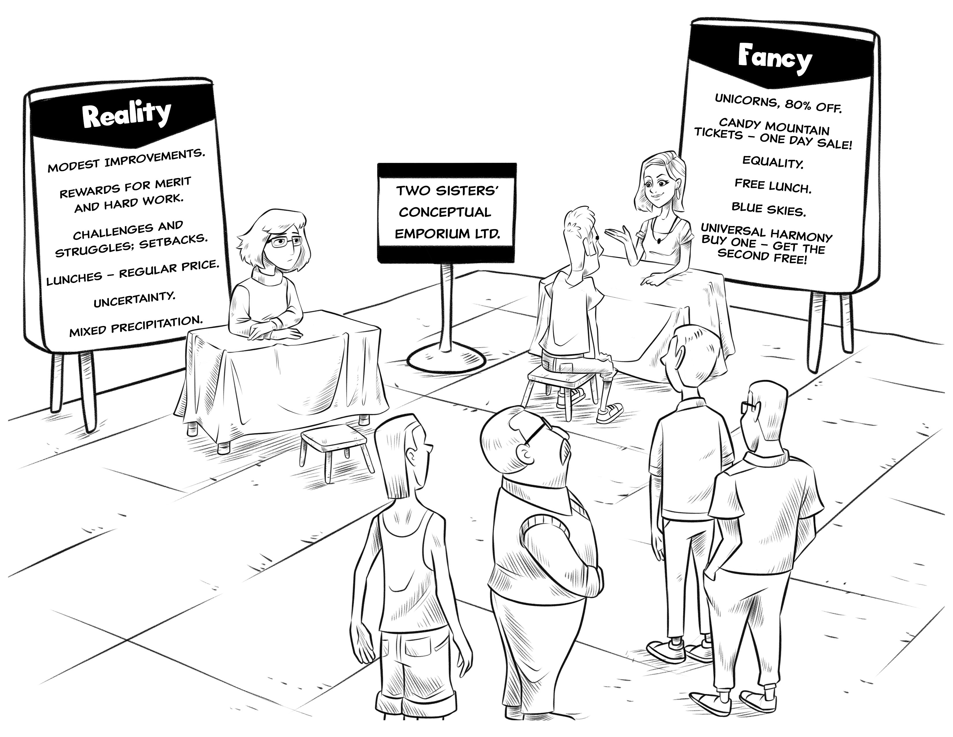 ![]() Observation #709: Reality is always the dowdy sister to Fancy. |